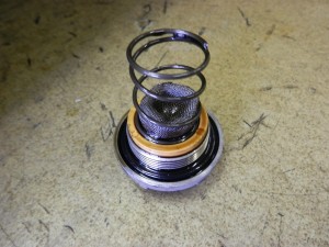 オイルストレーナーはエンジン下側の大きなキャップみたいなボルトの内側に入っています。