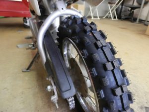 子供用50ccのタイヤとはいえ、やっぱり明らかにリヤタイヤはブロックの山が低い。