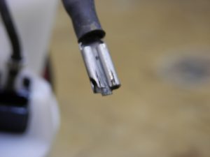 まずはきちんとガソリンが吐出されるのかコネクターの端子に電圧をかけて点検します。