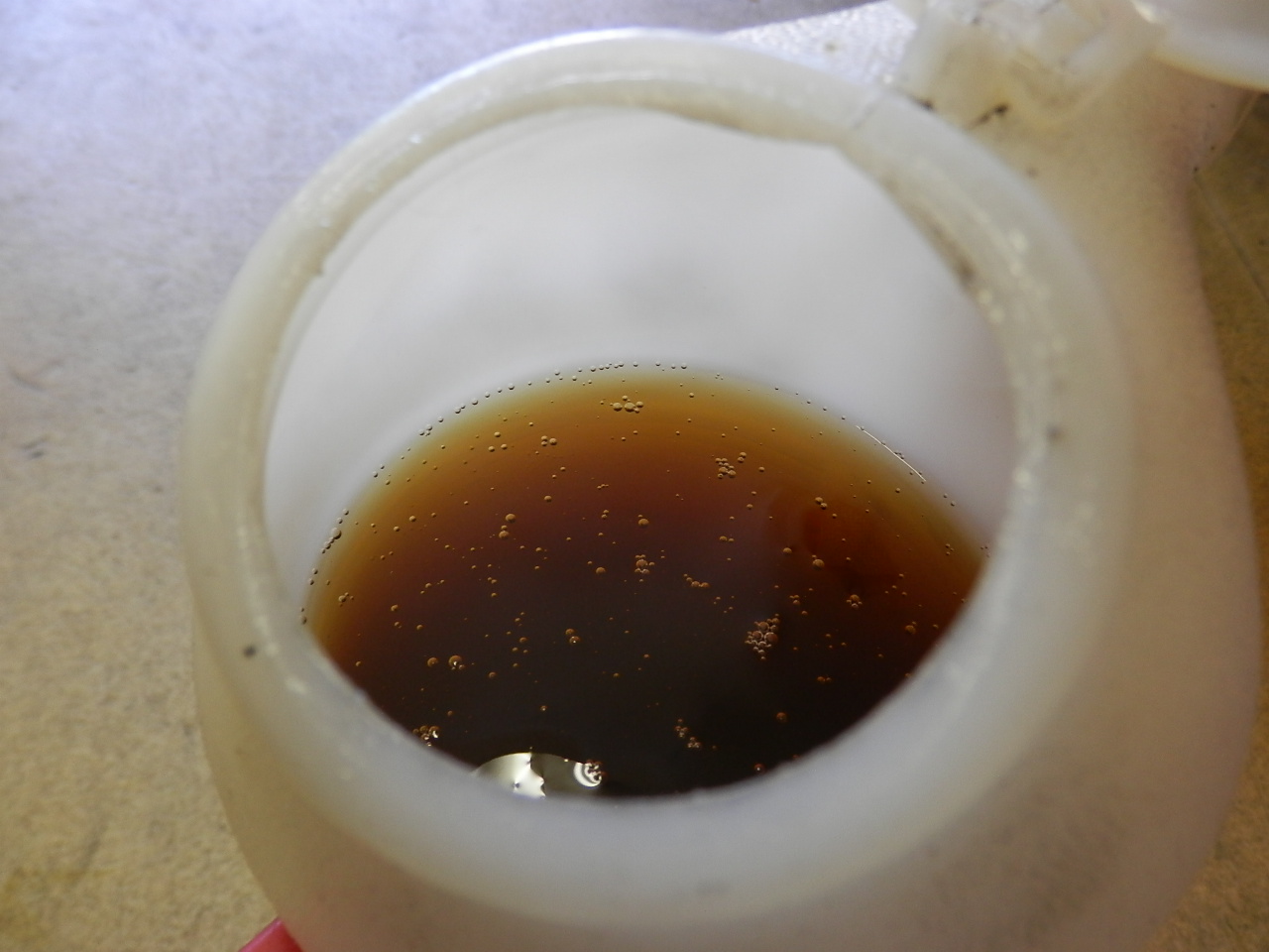 乳化した古いオイルに比べて新しいオイルはかなりドロドロしています。