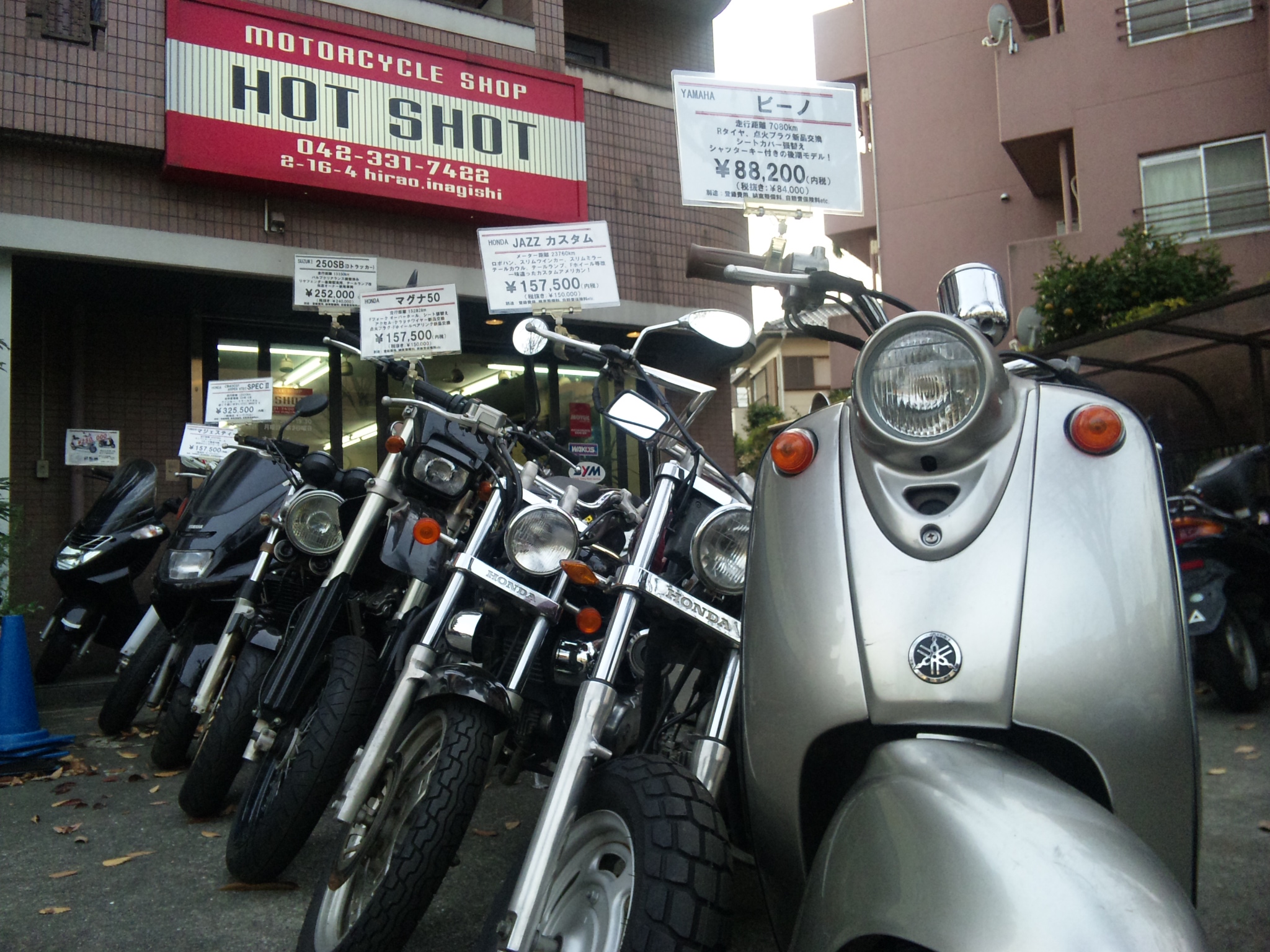 ホットショットでは、新車・中古車販売をはじめ、修理・車検・各種保険の取り扱い・ 不要バイクの引き取りなど、バイクに関する全般の業務を行っております。