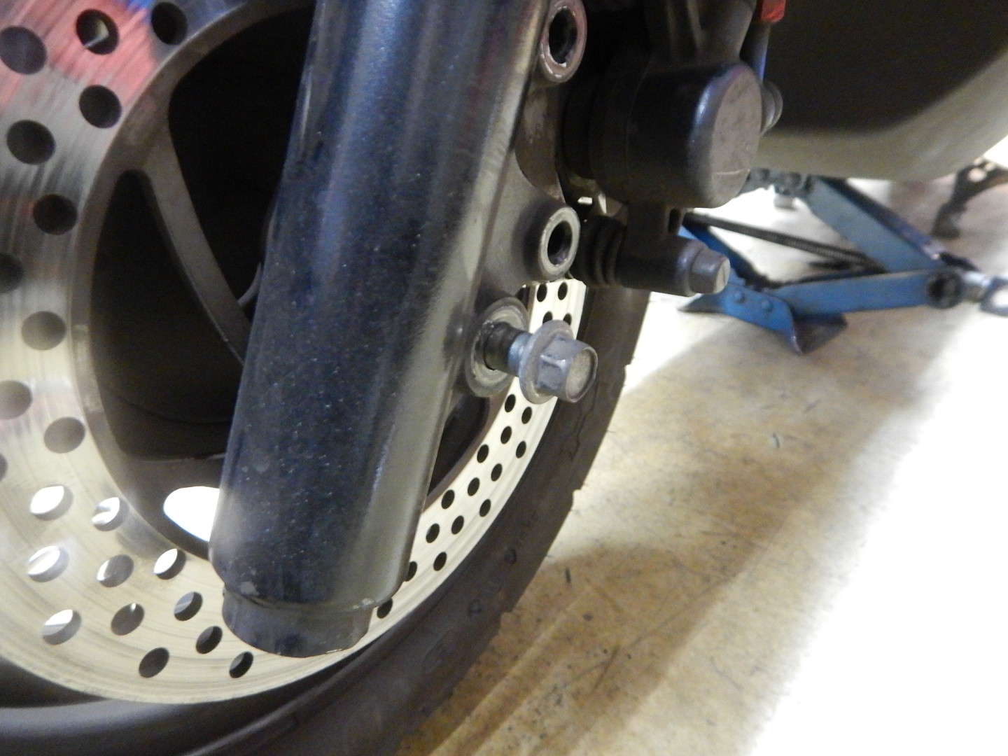 フロントのブレーキキャリパーを固定しているボルトを取り外し 、