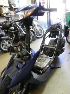 ただこのワイヤー交換も車体の前から足元を通ってシートロック部まで延びているので外装はほとんど取外す必要があります。