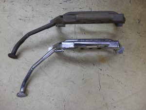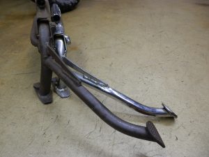 持ち込まれたローダウン用の中古のメッキスタンドを車体に装着!