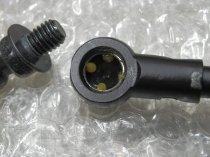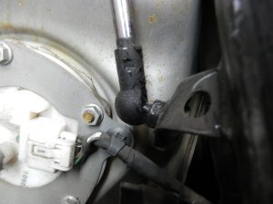 新品のダンパーは先にボールジョイント部を嵌め込んでおいた方が良さそうだと思い気合いをいれて押し込むと、、、