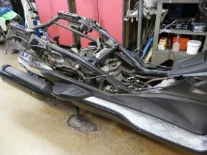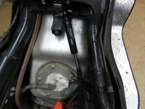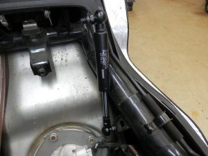 このクラスのバイクのシートって実は結構重くて、車体にはシートを支える為にダンパーが仕込まれています。