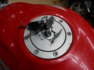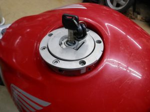 2.タンクキャップASSYを含め、キーセットとして鍵穴関係の部品を総取り換え(使い勝手はこれまでと変わらないが一番費用がかかる)