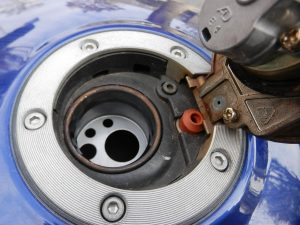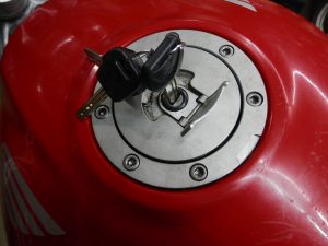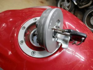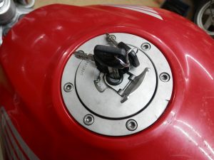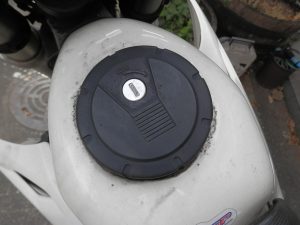 まずはタンクキャップをガソリンタンクから外さない事にはどうしようもないけど、