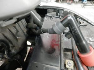 ジョグの場合はバッテリーが入っているところのカバーを外すと目の前に点火プラグのプラグキャップが現れます。