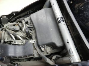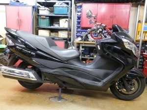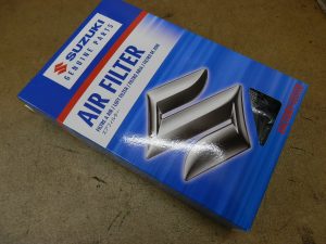 スカイウェイブのエアクリーナーはシート下のカバーを外すと現れます。