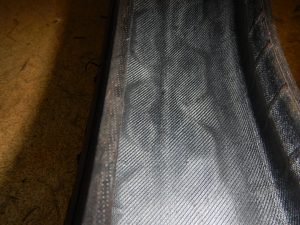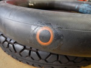 チューブタイプのタイヤなので、チューブを取り出して点検。
