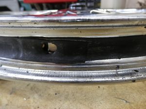 だけど、リムとリムバンドの穴位置はずれているので当然修正。