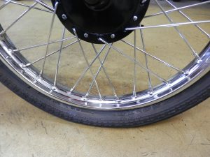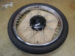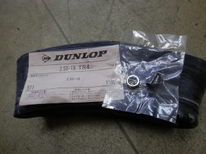 新品のDUNLOPのチューブを入れてタイヤを組み付けて完了。