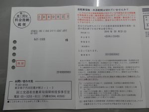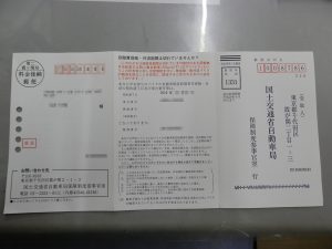 突然 ”国土交通省自動車局保障制度参事官室”。なるところから郵便物が送られてきたらちょっとビックリしますね。