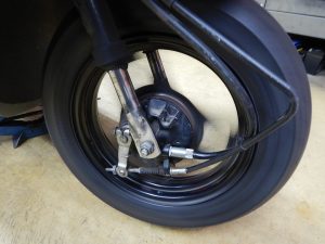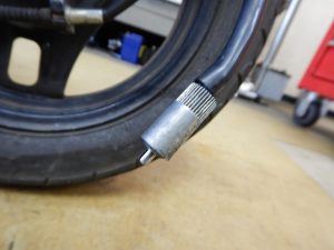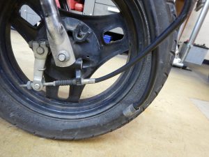 まずはその点検のため、フロントタイヤを見てみると、、、