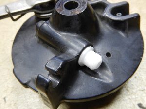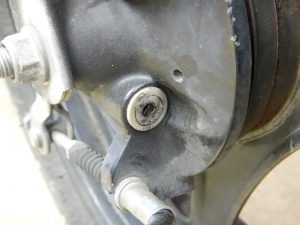車体に組み付いたままだと作業がしづらいので、車体からブレーキパネルを取り外し。