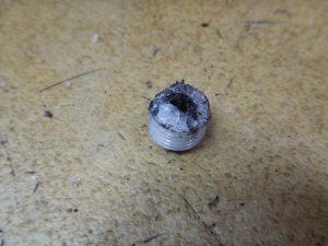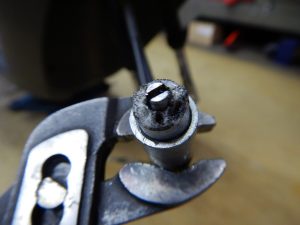 これが曲者で、ちょうど根元から折れてるのでプライヤーなどで掴むところがなくて なかなか外れない。