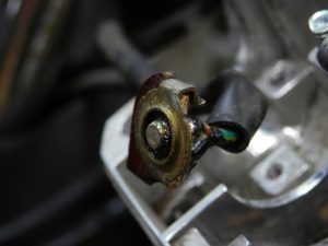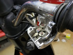 この状態になるので、ねじ込まれているアクセルワイヤーを取り外すと、