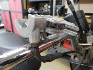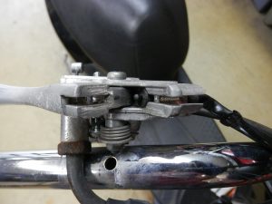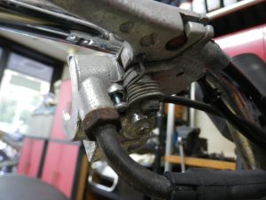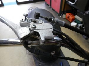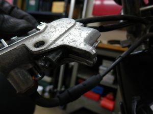 次にフロントブレーキワイヤーをレバーから外す為に、