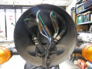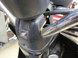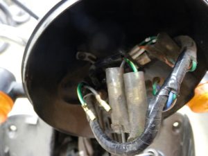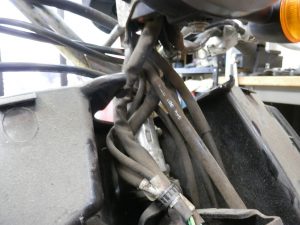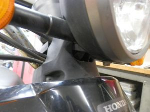 スタータースイッチの配線はここから下に入っていくのでフロントカウルも取外し。