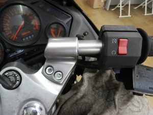 先ほど差込んだスイッチボックスの取付け用ボルトを締め込んでハンドルに固定。